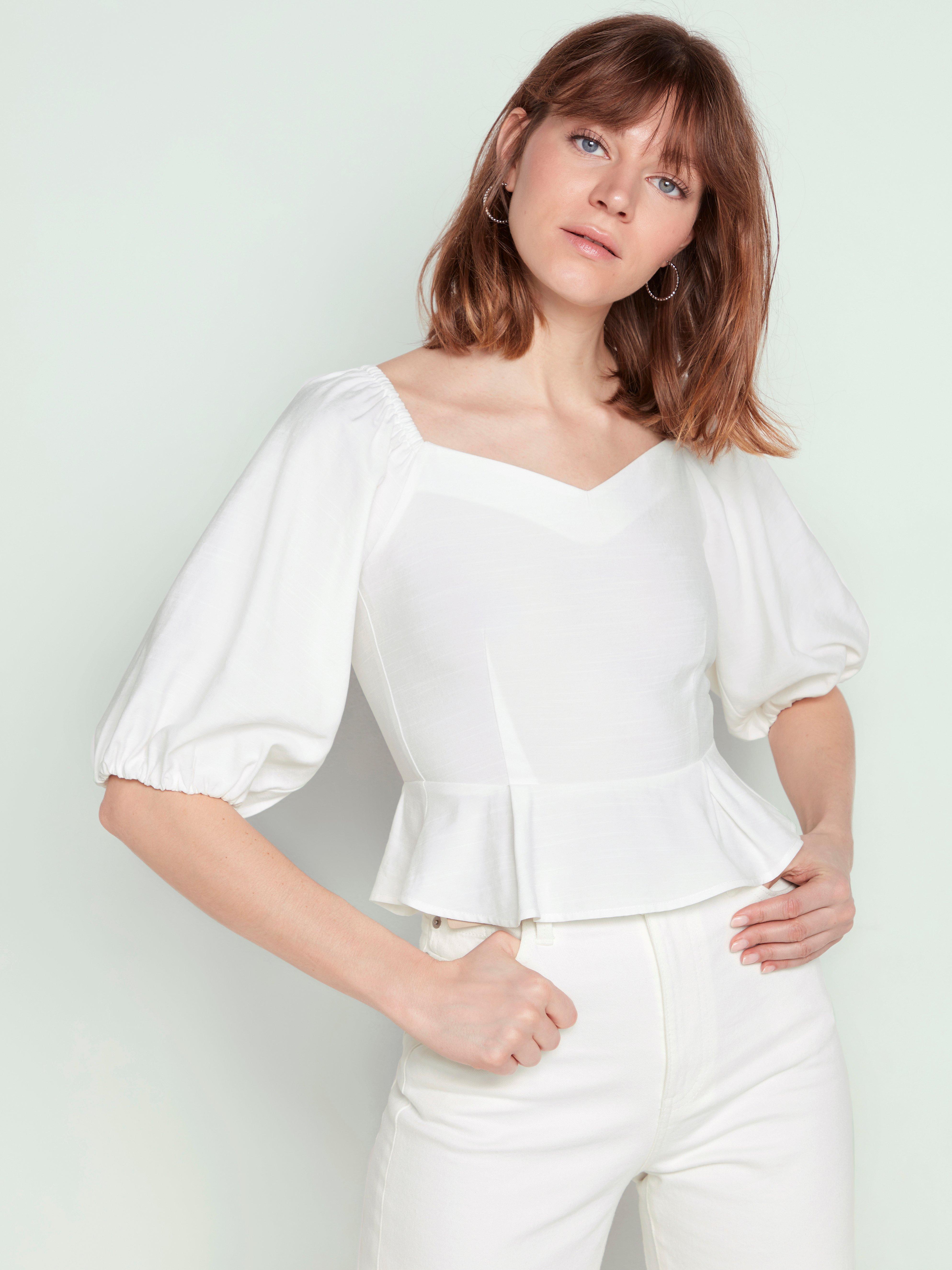 Hvit topp med puffermer. Du kan også velge å betale med betal senere i samarbeid med klarna eller med et h m gavekort. Nok 237 30 nok 339. Puff sleeve ruched top.