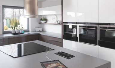 Installed into a worktop and or above most drawers the evoline backflip turns effortlessly with the press of a finger to reveal power sockets and a usb charger socket. Providing access to discreet power connectivity wherever it may be needed. When in use the raised sockets provide enhanced protection against liquid ingress and spillages.